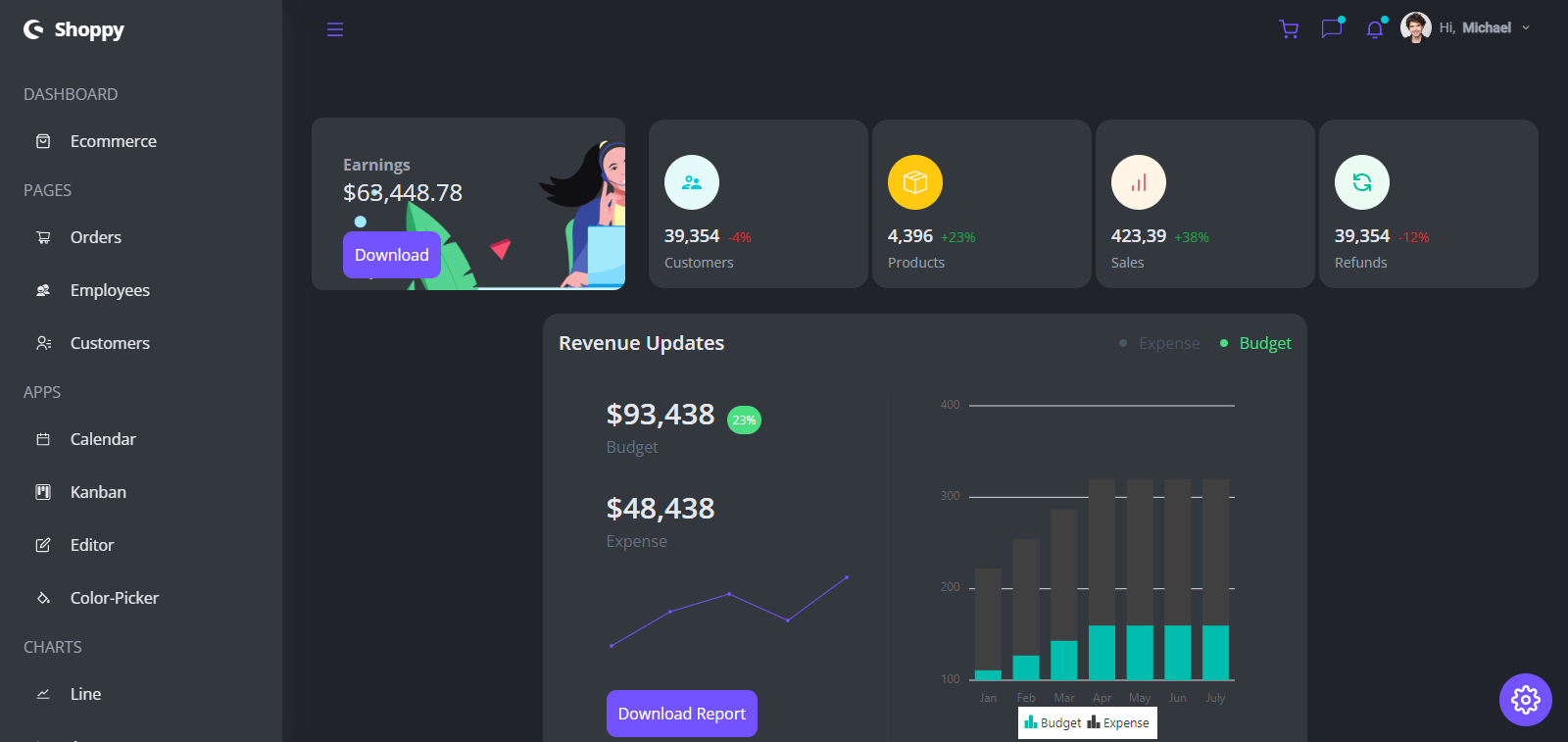 Shoppy dashboard is a multi-fucntional dashboard built with React, syncfusion and Tailwindcss.